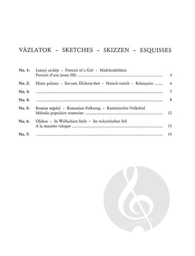 The work was composed in 1908-1910. 'Bartók may have chosen to call these sketches because most of the pieces are indeed like a painter's sketch for a later, larger work: quickly executed creative works, capturing the magic of the moment.