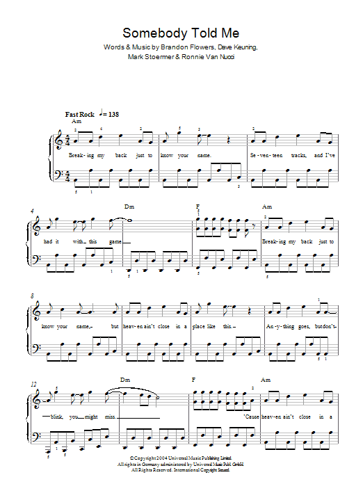 - Komponist Ronnie Van Nucci, Dave Keuning Mark Stoermer Brandon Flowers