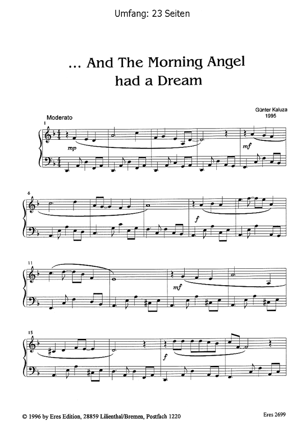 Somewhere In The Shadow. Eine Sammlung von 10 Klangspielen für Klavier, die - mit Ausnahme des einleitenden Präludiums - Impressionen beeindruckender Begegnungen wiedergeben, ohne Programm-Musik sein zu wollen. Günter Kaluza beschäftigt sich viel mit motivationsorientiertem Klavierunterricht und mit dem Affektivitäts- und Energiedesign der Musik verschiedener Epochen. Das Ergebnis dieser Erhebungen und Erfahrungen prägen seine Arbeit als Autor ganz weseltlich.