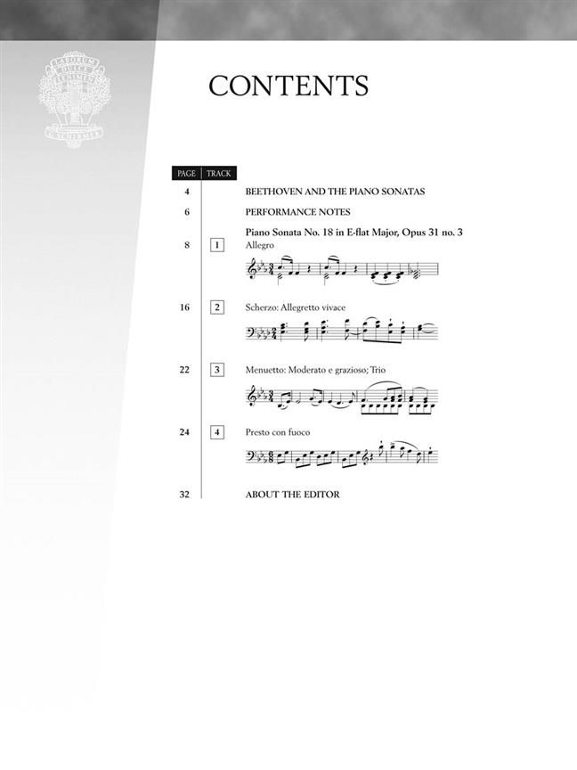 Beethoven's Piano Sonata No. 18 In E Flat Op. 31 No. 3 is now available as an individual edition with a companion CD, edited and recorded by noted Beethoven scholar, Robert Taub.