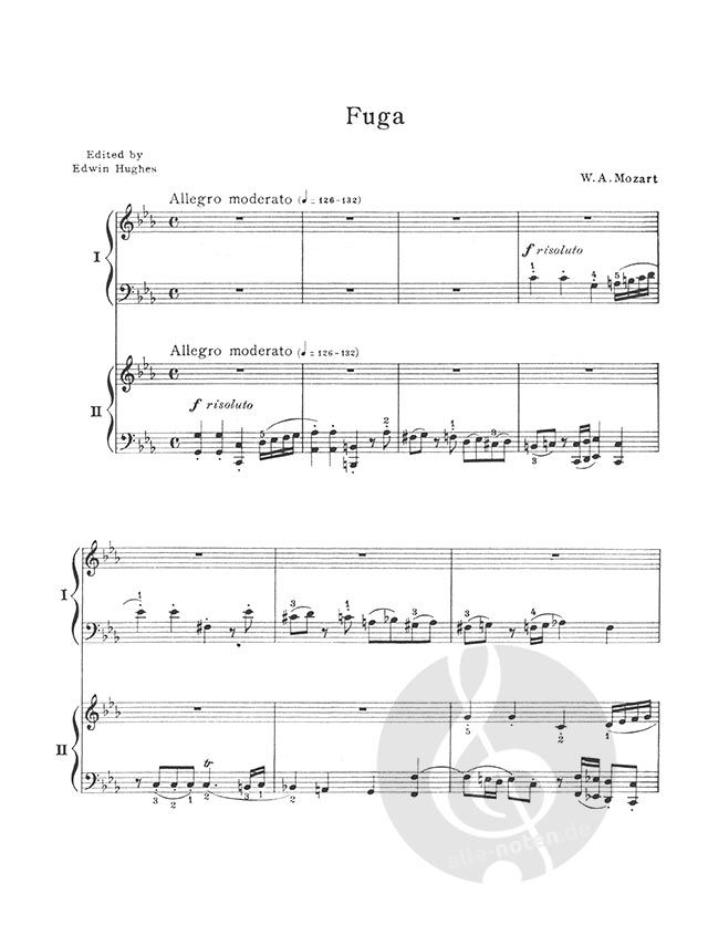 Composed for two pianos by this great classical composer: Sonata in D and Fugue in C minor. Edited by Edwin Hughes.