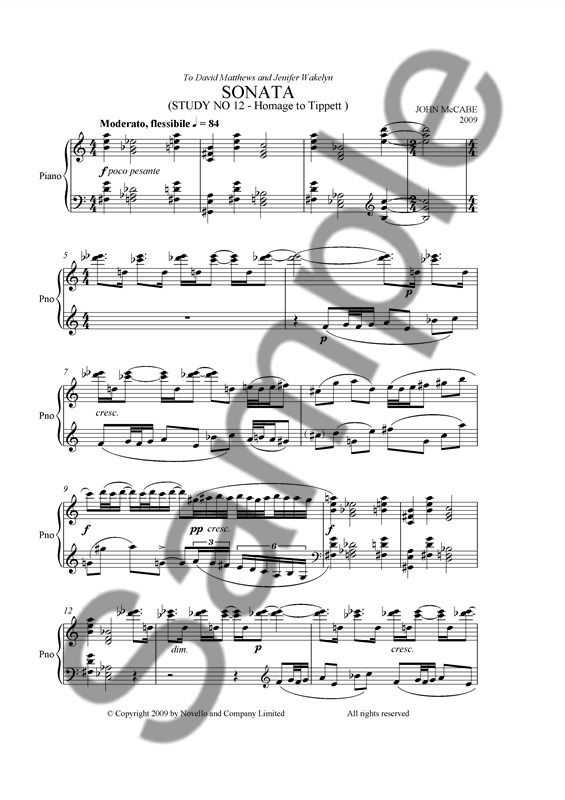 'The series of concert pieces (ranging from 5 to 16 minutes) that I have called Studies started with the intention of exploring either pianistic or compositional topics, but has since No 7, a homage to Dukas, also reflected my love of the music of various composers. Tippett's piano music, some of which I have played many times, has always fascinated me for its examination of an enormous range of keyboard sonorities and technique, and for its lyrical poetry and the energy and dynamism so typical of its composer. In this study, I have combined my tribute to him (during which I refer to two of his works) with an exploration of sonata form - for many years I resisted the idea of writing a Piano Sonata (note the capital letters), thinking sonata form itself was not for me, but I suddenly felt I could write a single-movement work, thinking of the examples of Hoddinott, Scriabin and Tippett himself, which would impinge closely on sonata form. Thus, the opening vigorous section recurs as a kind of recapitulation to close the work, and between those two parts are a slow 'movement', and then a lightly scored scherzo. The actual ending itself vanishes into the distance in a little phrase which gets quicker and quieter until it is hardly heard. '