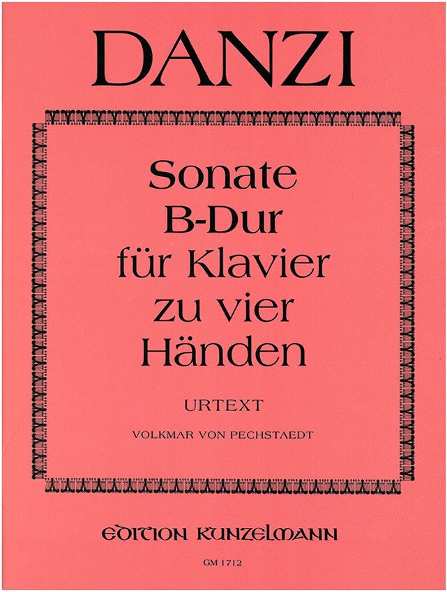 Dieser Neuausgabe der B-Dur-Sonate für Klavier zu vier Händen von Franz Danzi liegt eines von sechs (laut RISM) noch existierenden Exemplaren der Erstausgabe zugrunde, welches in der Musik- und Handschriftenabteilung der Universitätsbibliothek Uppsala (Schweden) unter der Signatur Utlinstrmus.tr. 401:25 aufbewahrt wird. Der Erstdruck erschien Anfang des Jahres 1806 (Quelle: Allgemeine Musikalische Zeitung, 8. Jahrgang, Int.-Bl. Nr. IX [Februar 1806] und Int.-Bl. Nr. X1 [Juni 1806] bei Breitkopf & Härtel in Leipzig (Platten-Nr. 502) und trägt folgenden Titel: SONATE Pour le Pianoforte a' quatre mains par FRANQ DANZI Oeuv. 9 In einer im März 1806 von der Allgemeinen Musikalischen Zeitung abgedruckten Rezension (AMZ 8. Jg., Sp. 379-384) bemerkt der Kritiker zu diesem Werk: '... Danzi ist bey seiner Sonate mit... Lebhaftigkeit, Mannigfaltigkeit und Gewandtheit zu Werke gegangen, . . . '. Nach einigen kritischen Tönen fasst er schliesslich zusammen: 'Die Ausführung für den Spieler ist nicht schwer; doch will alles sauber und genau, besonders aber das Andante sehr ausdrucksvoll und mit mannigfaltiger Nüanzirung der mancherley Bindungen und Vortragsarten einzelner Noten, behandelt seyn'. Die vorliegende Neuausgabe hält sich streng an die Erstausgabe. Lediglich einige offensichtliche Unrichtigkeiten wurden stillschweigend beseitigt. Ansonsten sind ausser ausgewählten Fingersatzvorschlägen keine Hinzufügungen des Herausgebers vorgenommen worden. Da die Opuszahl 9 auch für Danzis drei schon 1802 von Falter in München und später von Schott in Mainz veröffentlichte Duos für Viola und Violoncello (Platten-Nr. 100) verwendet wurde, erschien es sinnvoll, auf die Bezeichnung 'op. 9' im Titel der Sonate zu verzichten (vgl. V. von Pechstaedt: Thematisches Verzeichnis der Kompositionen von Franz Danzi, Göttingen 1994). Zum Zwecke besserer Übersichtlichkeit wird die Sonate hier in Partiturform wiedergegeben. Dies entspricht zwar nicht der heute noch üblichen Trennung beider Klavierparte, geschieht aber in der Überzeugung, dass die Sonate dadurch keine Wesensänderung erfährt. An dieser Stelle möchte ich nicht versäumen, Frau Inga Johansson, Universitätsbibliothek Uppsala, für die Einwilligung zur Benutzung der dort befindlichen Erstausgabe als Grundlage dieser Edition zu danken. Volkmar von Pechstaedt