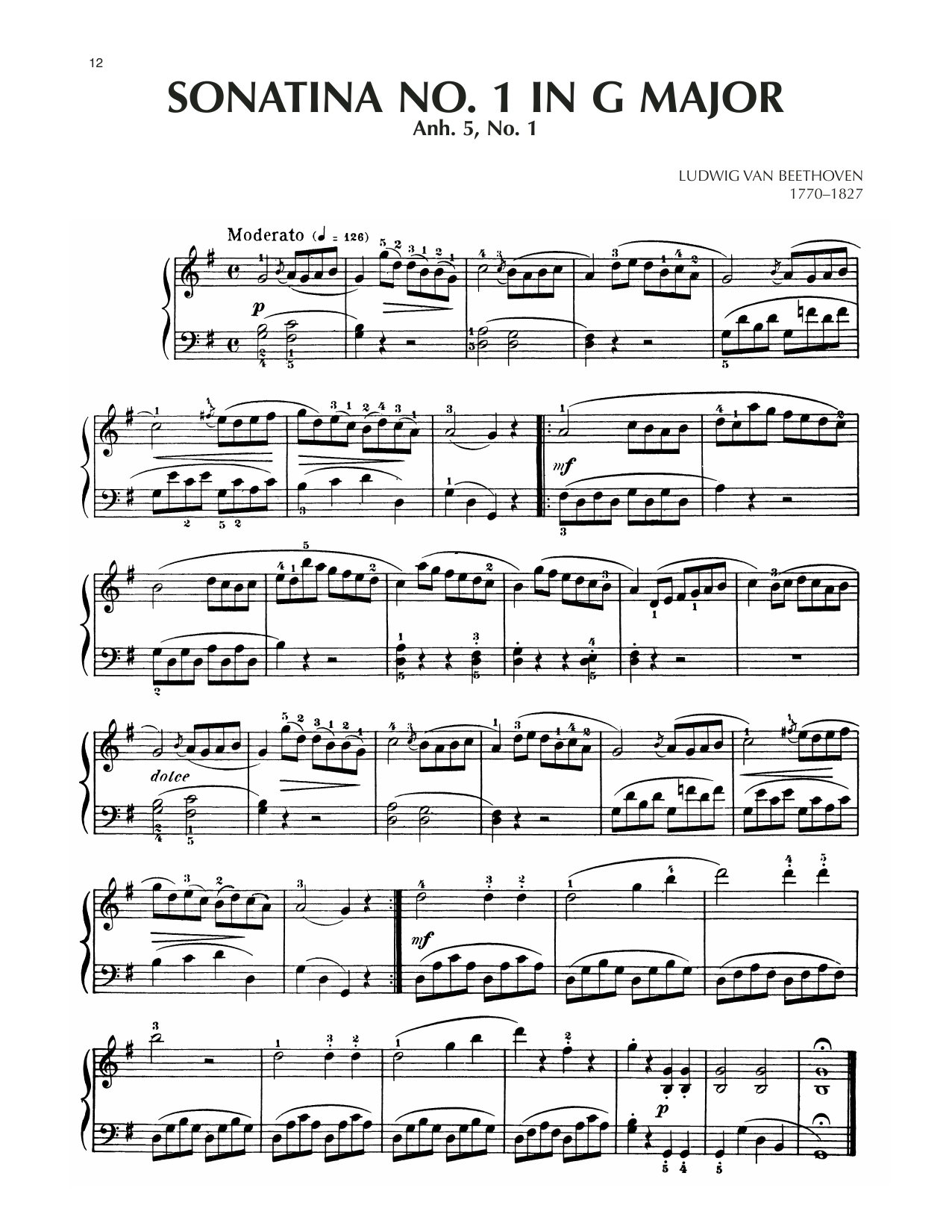 Sonatina In G Major, Anh. 5, No. 1