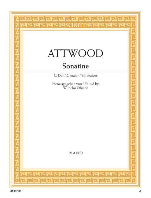 Thomas Attwood (1765-1838) war von 1784 bis 1787 Schüler Wolfgang Amadeus Mozarts. Er wirkte seit 1795 als Organist an der St. Paul's Cathedral in London, ab 1821 als Organist der Privatkapelle König Georgs IV. in Brighton und wurde 1836 Organist der Königlichen Vokalkapelle. Seine dreisätzige Sonatine in G-Dur (Allegro - Minuetto Andante - Rondo Allegro) besticht durch ihre verspielte und sangliche Thematik. Die Begleitung erfolgt in der linken Hand nahezu ausschliesslich in gebrochenen Akkorden, so dass der Schüler oder Spieler sich vollkommen auf die Ausgestaltung der Melodielinie konzentrieren kann.