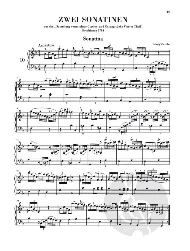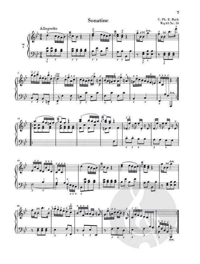 Generationen von Klavierschülern haben sich mittels der liebenswerten Gattung der 'Sonatine' langsam an das Spiel der 'großen Schwester', der Sonate, herangetastet. Anhand einer dreibändigen Ausgabe mit ausgewählten Sonatinen aus zwei Jahrhunderten können kleine und große, leicht fortgeschrittene Klavierschüler hier einen Streifzug durch die Entwicklung der Klaviermusik vom frühesten 18. Jahrhundert bis ans Ende des 19. Jahrhunderts unternehmen. Der erste Band enthält 26 leichte bis mittelschwere Sonatinen aus der Zeit des Hochbarock und der Vorklassik, u.a. von C. Ph. E. Bach, J. Chr. Fr. Bach, Händel, G. Benda, D. Scarlatti und A. Soler. Da der Begriff der 'Sonatine' in dieser Zeit noch in recht unterschiedlicher Bedeutung gebraucht wurde, bietet der Band Werke verschiedenen Charakters. Einfache Stücke am Anfang erleichtern dem Schüler den Einstieg; dann folgt eine chronologische Anordnung der Sonatinen. Eine Tabelle zeigt die wichtigsten Verzierungen und ihre richtige Ausführung nach den Regeln der Zeit. Ein Fundus für den Klavierunterricht!