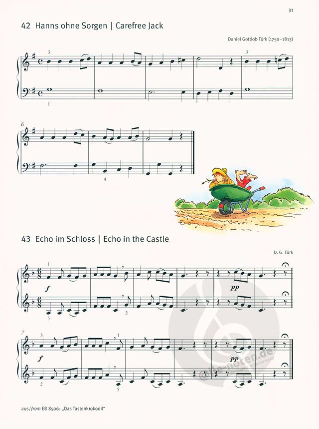 Diese bunte Zusammenstellung leichtester und leichter Klaviermusik ist eine hervorragende Ergänzung zu jeder verwendeten Klavierschule. Sie führt den jungen Pianisten in unterschiedliche Epochen, Stilarten sowie vielerlei Satztechniken ein, wobei grundlegende Spielbewegungen erworben und die breiten Klangmöglichkeiten des Klaviers entdeckt werden können. Viele der kleinen Kompositionen eignen sich auch als Modelle zum Improvisieren.
