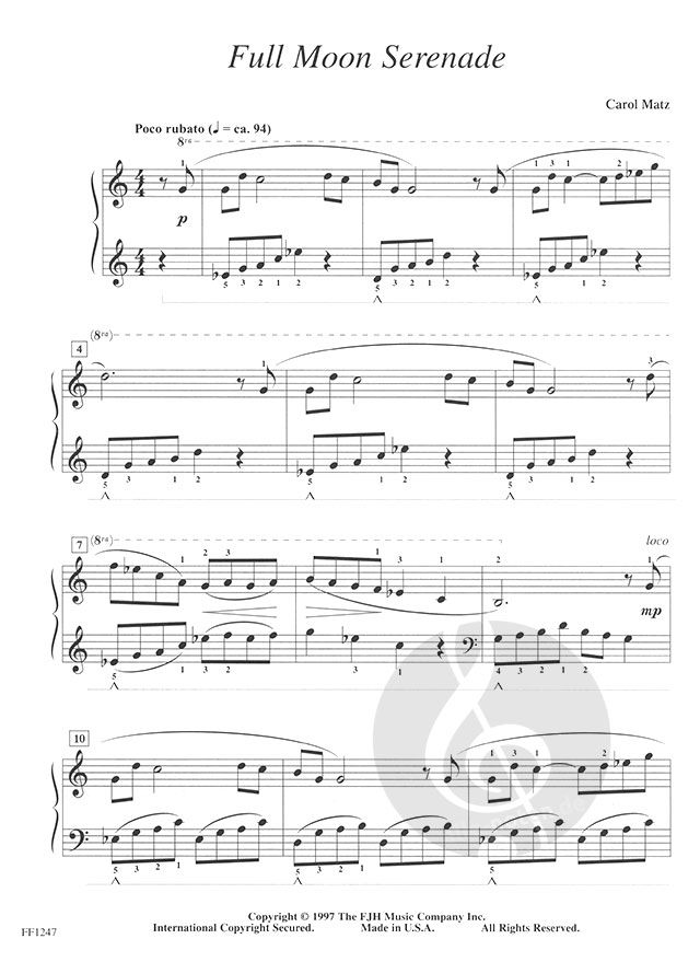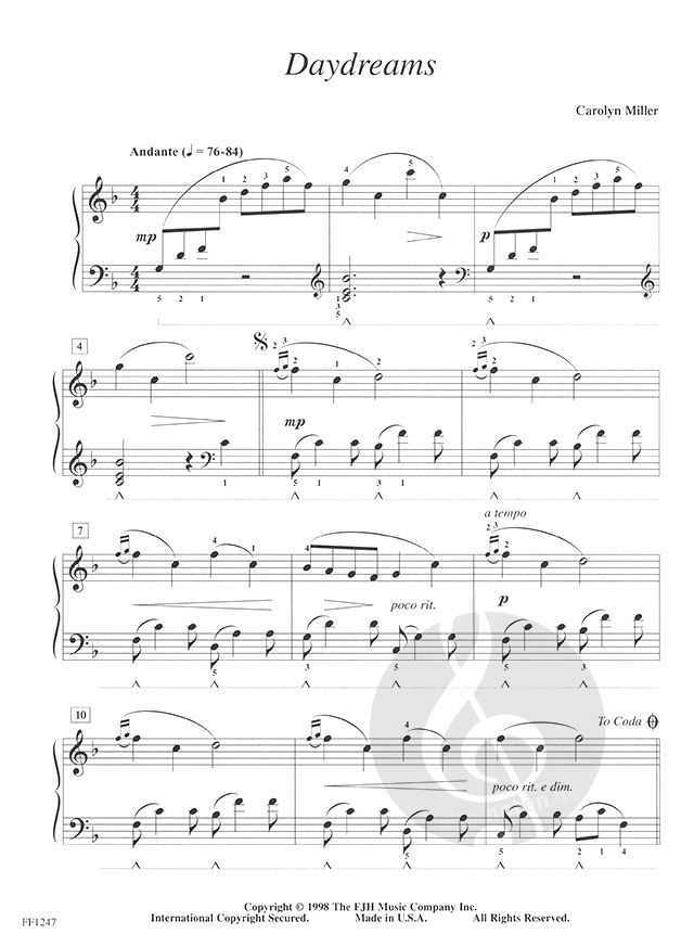 Der Inhalt umfasst: Daydreams (Miller); Marshmallow Rag (Massoud); Emerald Toccata (Massoud); Full Moon Serenade (Matz); Shanghai Shuffle (Costley); Cuban Nights (Olson); Bayou Boogaloo (McLean); Russian Legend (Martyska); Ghostrider (Rossi).