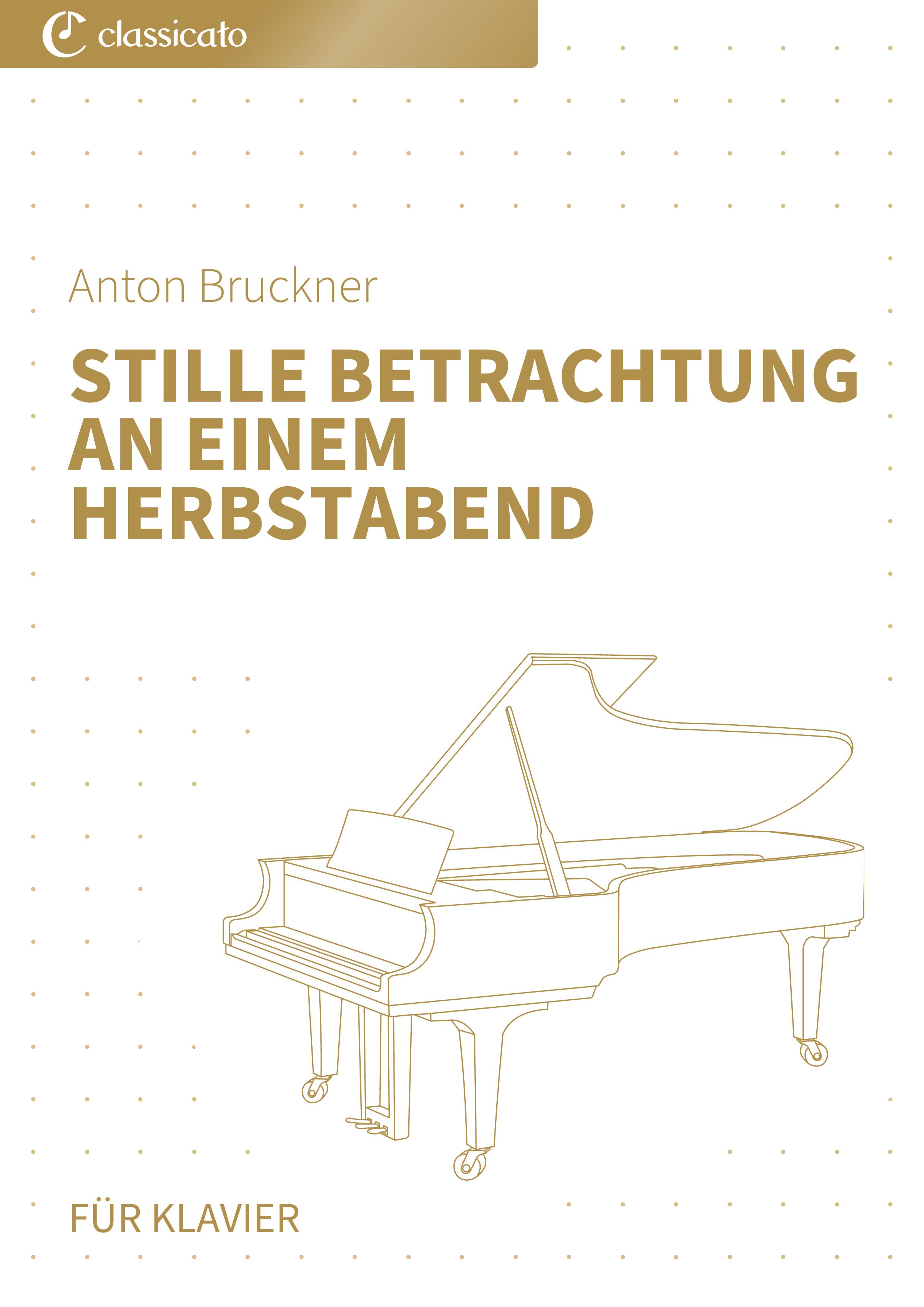 Die vereinfachte Fassung der Klaviernoten für "Stille Betrachtung an einem Herbstabend, WAB 123" von Anton Bruckner in a-Moll im 6/8-Takt richtet sich an Anfänger und leicht fortgeschrittene Pianisten. Sie ermöglicht ein müheloses Erlernen der tiefgründigen und kontemplativen Musik dieses Stücks. Diese Version bewahrt die introspektiven Melodien und den besinnlichen, herbstlichen Charakter des Originals, dessen feierlich ruhiges Tempo die Stimmung eines stillen Herbstabends unterstreicht, und ist optimal auf Spieler mit grundlegenden bis mittleren technischen Fähigkeiten abgestimmt. Das Werk lädt ein, Bruckners ausdrucksstarke und spirituelle Musiksprache zu entdecken und eignet sich ideal für Anfänger und fortgeschrittene Anfänger, die ihren musikalischen Ausdruck am Klavier vertiefen möchten. Es fängt die ruhige, nachdenkliche Stimmung eines Herbstabends perfekt ein und ist eine wunderbare Wahl für die herbstliche Zeit.