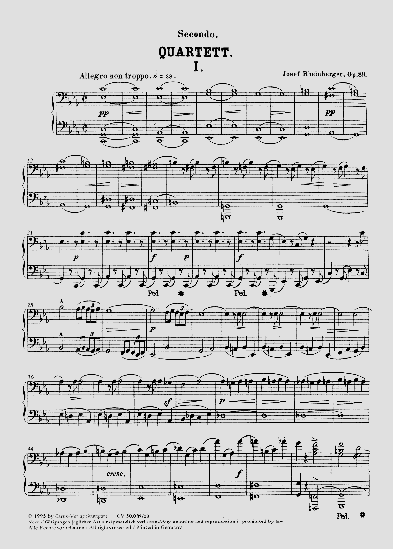 In Rheinbergers Streichquartetten verbinden sich Klangdichte und Variationskunst, die in der Nachfolge Schumanns und Mendelssohns gesehen werden können, mit Rheinbergers Sinn für Formgebung, melodische Schönheit und gediegene kontrapunktische Arbeit; seine Auseinandersetzung mit musikalischen Strömungen der Zeit zeigt sich bei dem jetzt auch als praktische Ausgabe vorliegenden ersten Streichquartett z. B. in einem wohl ironisch zu verstehenden Zitat aus Wagners Tristan-Vorspiel im Finalsatz.