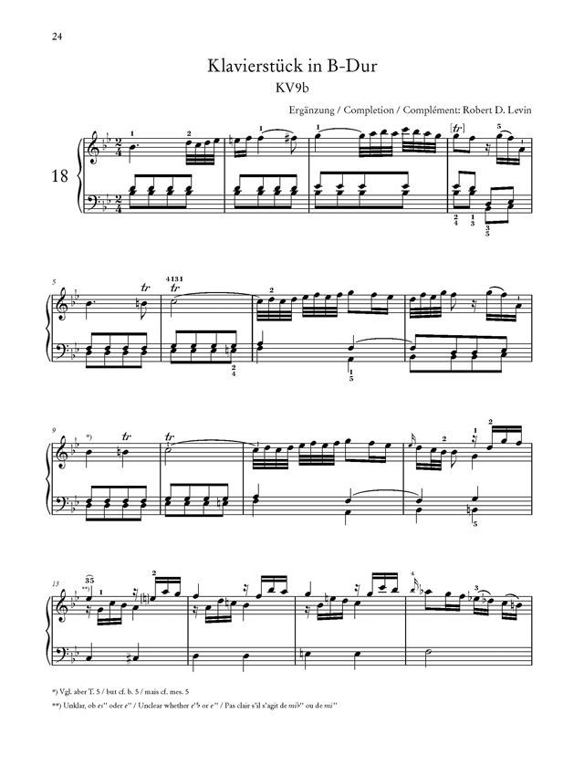 Nach den Quellen herausgegeben und mit Fingersätze von Ulrich Leisinger. Ergänzungen des fragmentarischen Klavierstücks KV 9b von Robert D. Levin