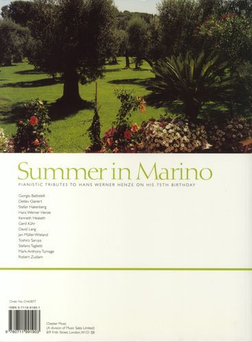 Over the weekend of 7th July 2001, composers from many countries came together at La Leprara, in Marino near Rome in celebration of Hans Werner Henze's 75th Birthday. Eleven new works were performed, forming the content of this collection of works for one or two pianos. Suitable for advanced pianists.