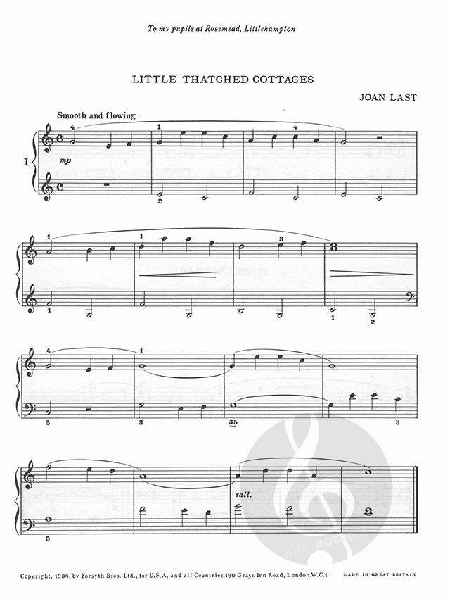 For many years a professor at the Royal Academy of Music, Joan Last was widely admired for her skill and vast experience in the teaching of young beginners and adults alike. There is an 'old world' tinge to these twelve descriptive sketches of buccolic life. Suggested grade 1-2