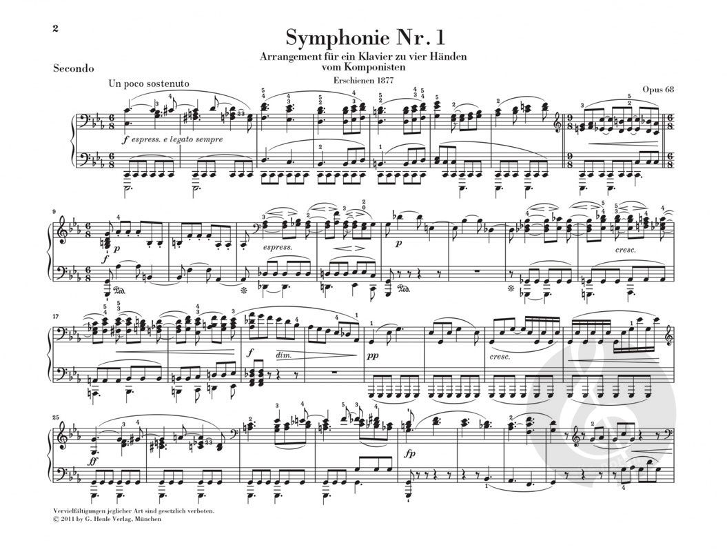 Im 19. Jahrhundert waren vierhändige Arrangements üblicherweise Fassungen, die man in den eigenen vier Wänden spielte, wenn man die Werke nicht im Konzert hören konnte. Brahms jedoch erstellte in diesen Fällen nicht einfach nur Gebrauchsfassungen, sondern übertrug seine Werke pianistisch kreativ auf das Klavier. Dabei nahm er sich als Komponist größere Freiheiten als fremde Verlagsarrangeure. In dieser Gestalt trugen seine Arrangements wesentlich zur großen Wirkung seines Schaffens im Musikleben des 19. Jahrhunderts bei. Gerade wegen ihrer Kreativität haben Brahms' Arrangements in den letzten Jahrzehnten neues Interesse in der Musikwelt gefunden. Unsere Urtext-Edition der Symphonien Nr. 1 und 2 für Klavier zu vier Händen bietet einen fundierten Notentext auf der Basis des jüngst erschienenen Bandes der neuen Brahms-Gesamtausgabe.
