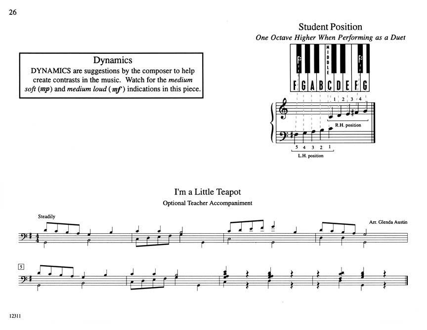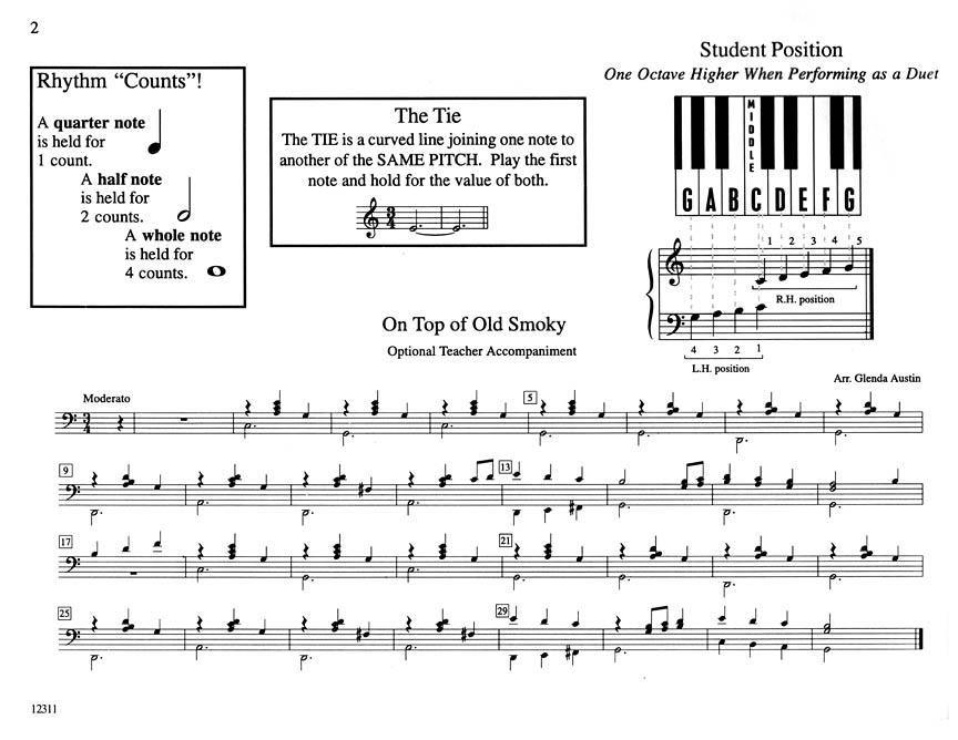 TLF Familiar Tunes is a collection of just that. All of the pieces are very well known, primarily by school-aged children. Suggestions for Instruction: After the student has learned the song, add the optional duet part and sing along. Key: Various