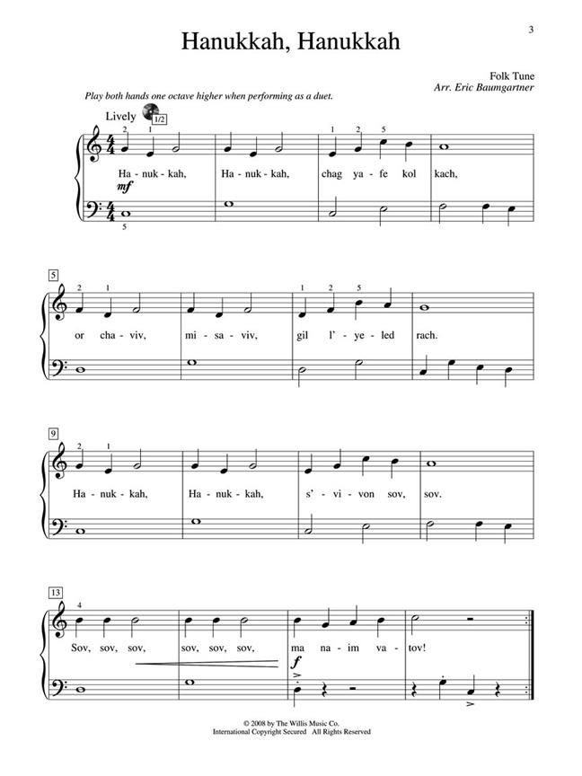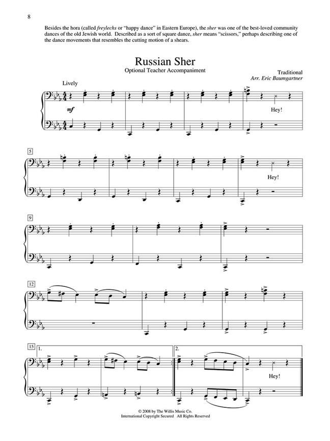 Your students will love playing these early elementary level supplements with fantastic optional teacher accompaniments arranged by Eric Baumgartner. They complement and enhance the original Teaching Little Fingers to Play method, offering important guides and reminders to reinforce musical concepts. Our Teaching Little Fingers series successfully encourages advancement and also provides delightful recital material! 7 songs, including: Ani Purim - Hava Nagila - Oyfn Pripetshik - Rozhinkes mit Mandlen - Russian Sher - Siman Tov - Zemer Atik.