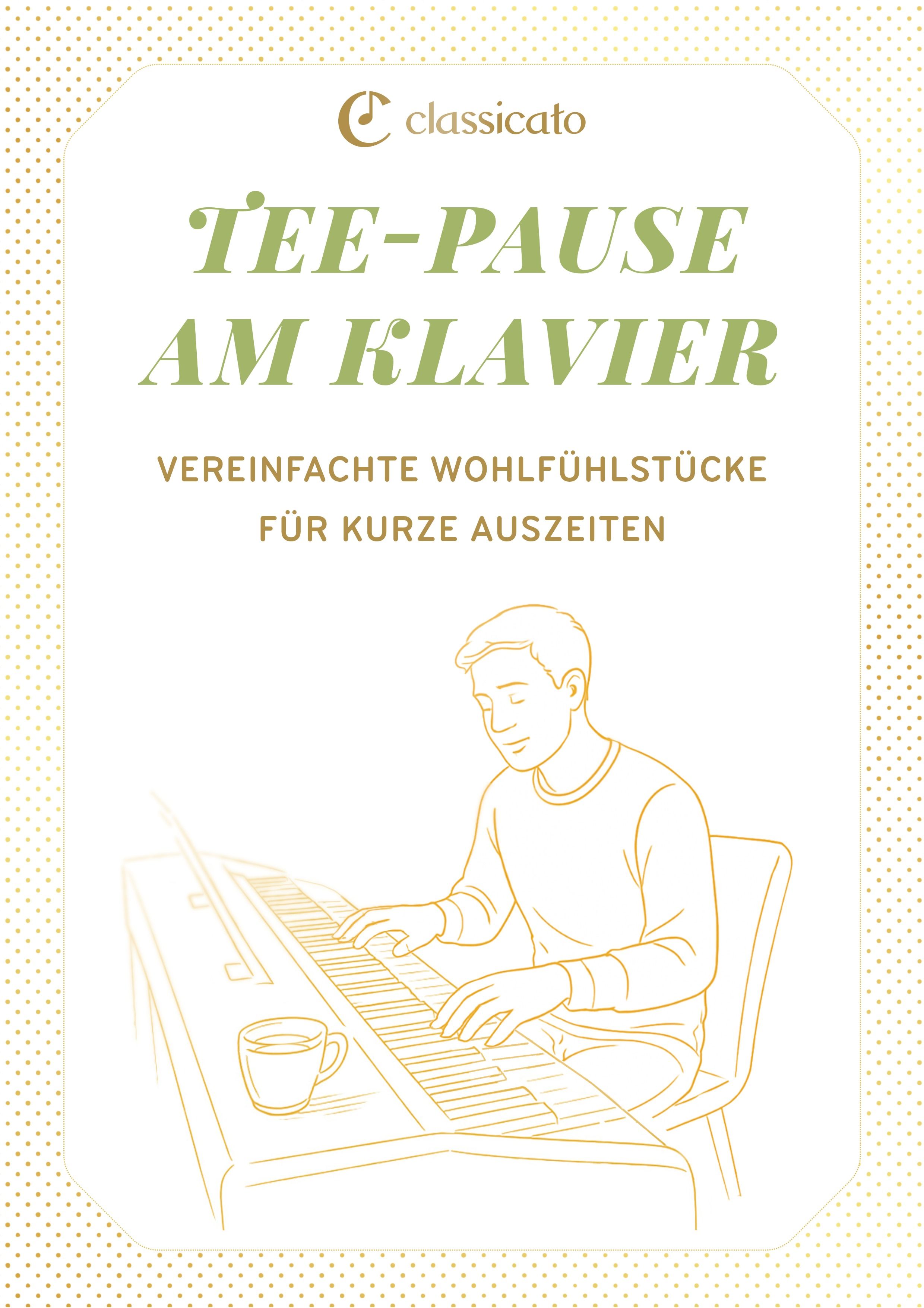 Manchmal braucht es nur eine Tasse Tee, ein paar ruhige Minuten und sanfte Klänge, um durchzuatmen und zur Ruhe zu kommen. Diese Sammlung verwandelt deine Klavierbank in einen Rückzugsort: fünf meditative Meisterwerke in vereinfachten Fassungen, die sich sanft vom Blatt spielen lassen. Mendelssohns zartes Lied ohne Worte, Bridges nostalgisches Rosemary, Elgars herzlicher Liebesgruß, Fields mondscheinweiches Notturno und Purcells elegantes Menuett - jedes Stück ist eine kleine Auszeit. Mal zart-melancholisch, mal warm-umarmend, mal tief beruhigend. Einzigartig: Zu jedem Stück gibt es eine passende Tee-Empfehlung, die Atmosphäre und Musik perfekt ergänzt. Wähle deinen Tee, brühe ihn auf, spiele - und tauche ein in ein vollständiges Entspannungsritual. Ideal für Wiedereinsteiger und alle, die den Alltag hinter sich lassen möchten. Große Noten, ein bis zwei Seiten pro Stück, kein stundenlanges Üben nötig. Deine persönliche Tee-Pause. Entspannend, meditativ, wohltuend.