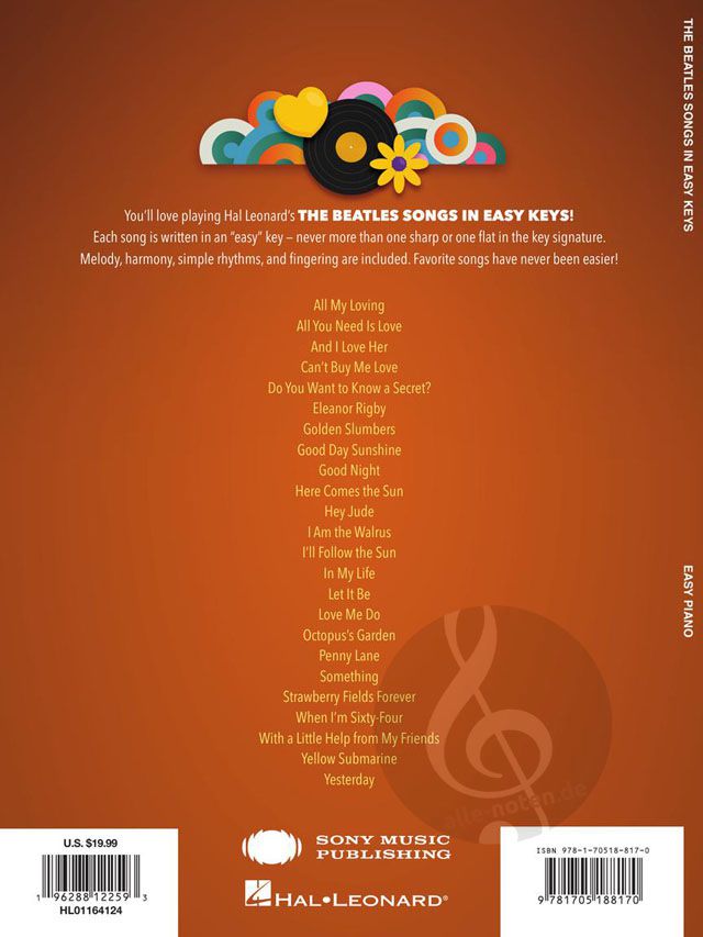 You'll love playing Hal Leonard's The Beatles - Songs in Easy Keys! Each song is written in an easy key - never more than one sharp or one flat in the key signature. Melody, harmony, simple rhythms, fingering, and lyrics are included. Favorite songs have never been easier!