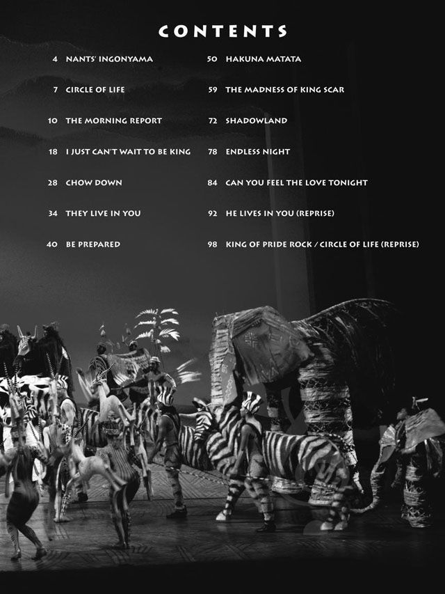 Easy arrangements of 15 songs from this hit Tony-winning musical: Be Prepared - Can You Feel the Love Tonight - Circle of Life - Endless Night - Hakuna Matata - I Just Can't Wait to Be King - King of Pride Rock - The Morning Report - Shadowland - They Live in You - more.