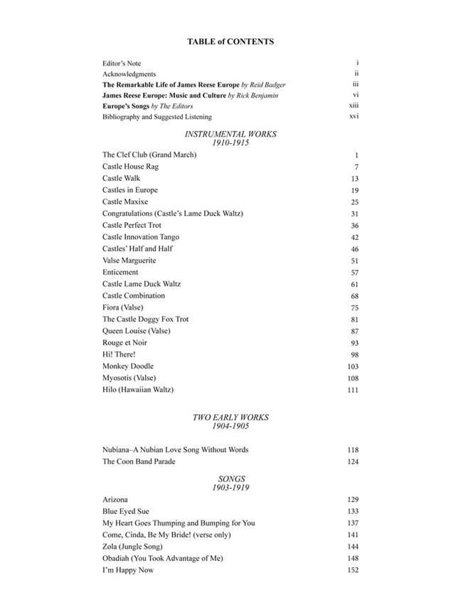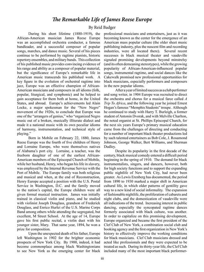 James Reese Europe (1880-1919) was one of the most important African-American musicians and figures of the ragtime era. This edition includes the complete published works in their original forms, original cover artwork, and detailed articles on Europe's life and music.
