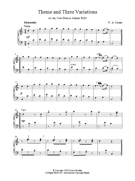 Theme and Three Variations on 'Ah, Vous Dirai-je, Maman' K265