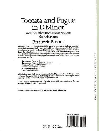 Includes 'Chaconne In D Minor', 'Prelude And Fugue In E Flat' (St. Anne) and 'Ten Chorale Preludes'. Authoritative German editions. Von BUSONI!