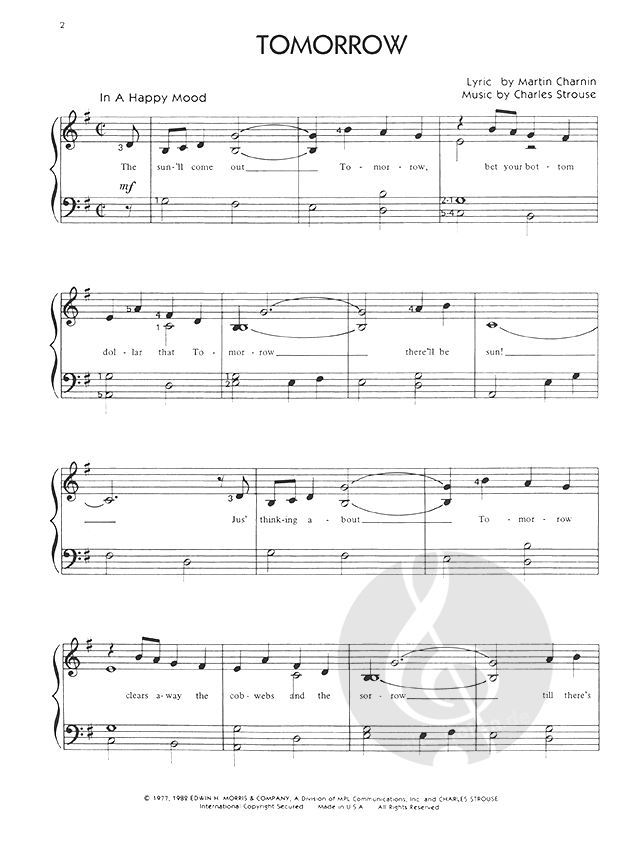 Tomorrow from Annie Easy Piano