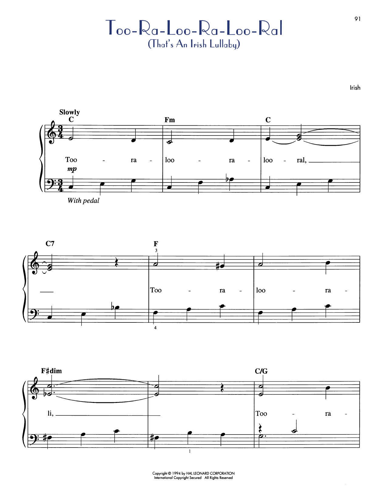 Too-Ra-Loo-Ra-Loo-Ral (That's An Irish Lullaby)