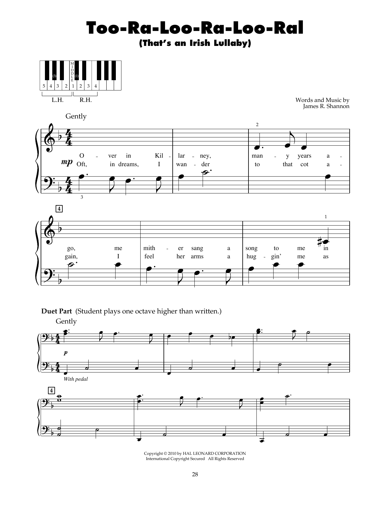 (That's An Irish Lullaby) - Five-Finger Piano
