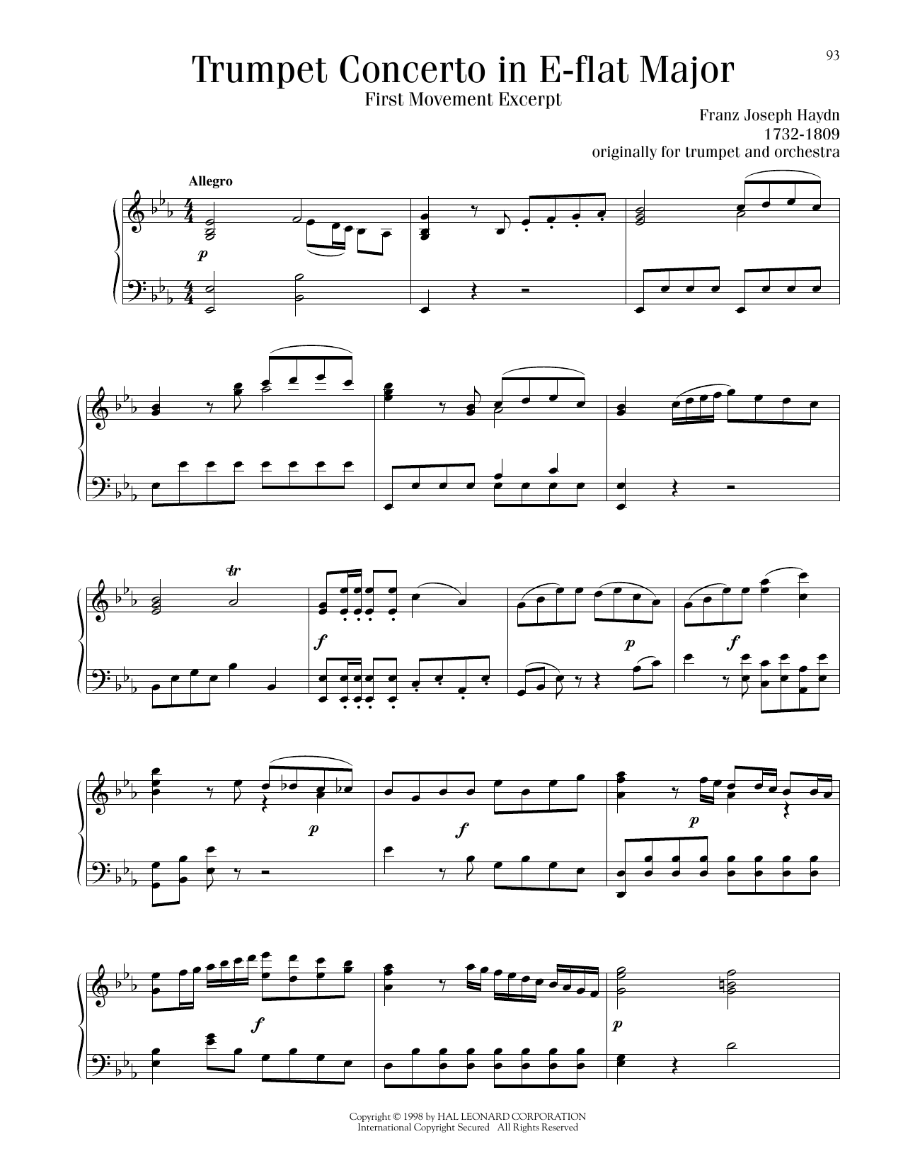Trumpet Concerto in E-flat Major, First Movement Excerpt