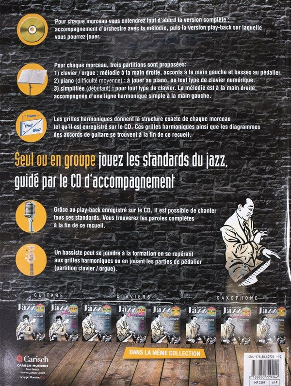 For each song you will hear the full version, featuring the Pianist accompanied by an Orchestra, as well as a playback version for you to play along to. There are three different versions for each piece: 1)Keyboard/Organ 2)Piano (medium difficulty) 3)Piano (simple for beginners) The pieces in Tubes Du Jazz Claviers are great for playing as part of a group. The included harmonic grids will help Bass and Keyboard players to get their bearings, and all of the featured pieces can be sung. Lyrics are included at the back of this book.