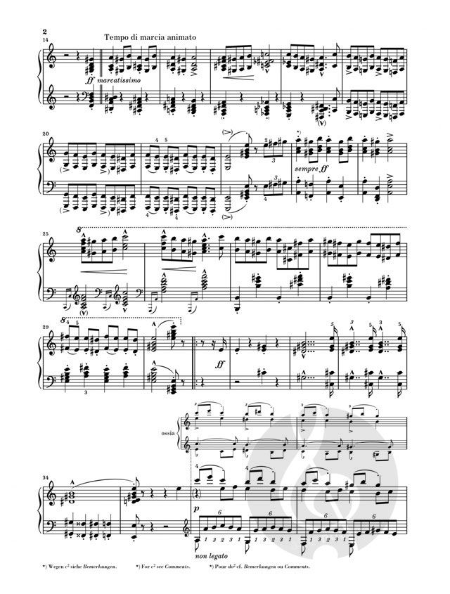 Die 'Ungarische Marseillaise' - so wird der Rákóczi-Marsch gerne bezeichnet. Die Anfänge dieses Marschliedes gehen in die Zeit um 1730 zurück. In dessen Text fordern die Magyaren Franz II. Rákóczi dazu auf, sein Volk von der Unterdrückung durch die Habsburger zu befreien. Die Melodie findet sich in vielen Bearbeitungen wieder, z. B. bei Brahms und Berlioz; auch Liszt verfasste einige Arrangements von unterschiedlichem Schwierigkeitsgrad. 'Zum Concert-Vortrag bearbeitet' hat er das Thema schließlich in seiner hochvirtuosen 15. Ungarischen Rhapsodie. Unsere Urtextausgabe wird durch ein kenntnisreiches Vorwort der ungarischen Liszt-Forscherin Mária Eckhardt eingeleitet.