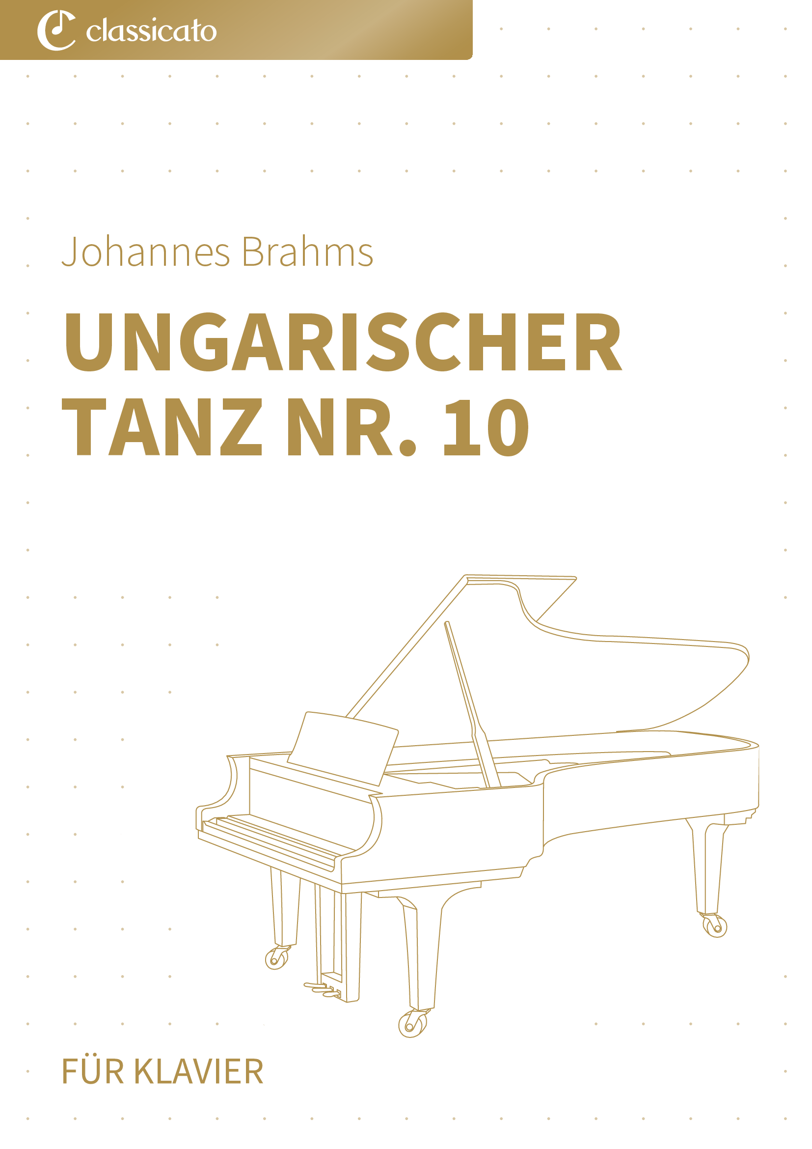 Dieses Ausgabe enthält die Noten zum Werk "Ungarischer Tanz Nr. 10" von Johannes Brahms für Klavier zweihändig. Anspruchsvollster Schwierigkeitsgrad in E-Dur.