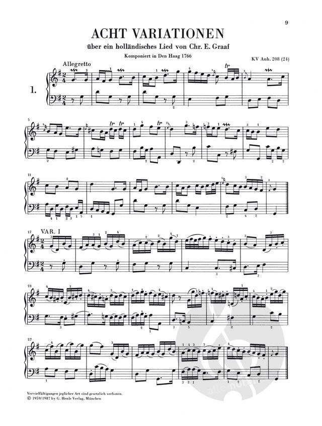 Neben seinen 18 Klaviersonaten hat Mozart auch fast ebenso viele, nämlich 15 Variationszyklen hinterlassen. Variationen über populäre, aber auch über eigene Themen waren damals eine Art Modeartikel, und Mozart steuerte ebenfalls seinen Teil dazu bei. Sicher auch aus finanziellen Gründen - Modeartikel lassen sich nun einmal gut verkaufen. So sind Mozarts Variationen, ganz im Gegensatz zu seinen Klaviersonaten, alle zu seinen Lebzeiten im Druck erschienen. Dass es Modeartikel waren, bedeutet aber, gerade bei Mozart, nicht, dass sie nicht von feinster Qualität wären, voller Erfindungsreichtum, Spielfreude und Eleganz. Man sollte sie nicht unterschätzen, sondern einfach seine Freude an diesen wunderschönen Werken haben.