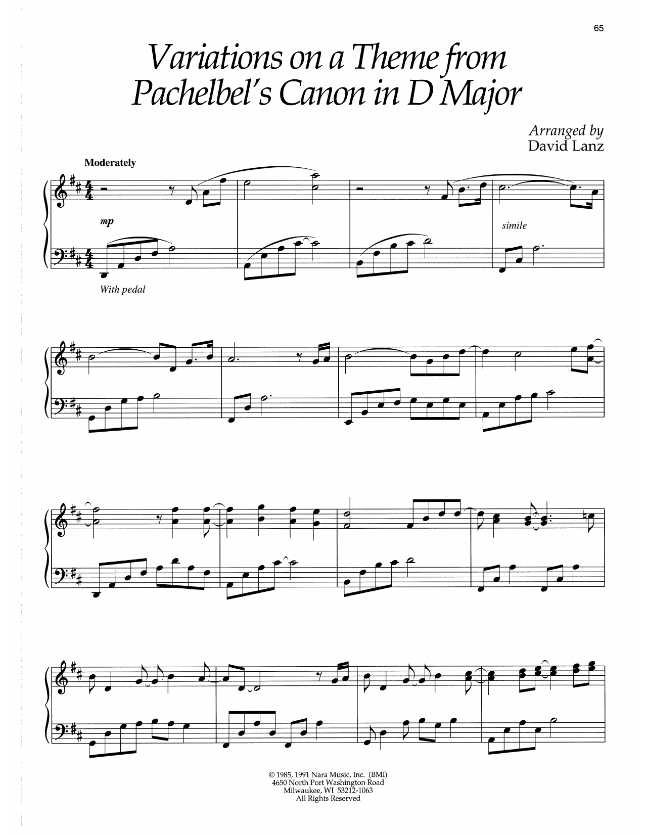 Variations On A Theme From Pachelbel's Canon In D Major