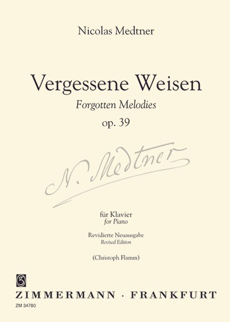 Der Zyklus Vergessene Weisen op. 39 gehört zu Medtners bedeutendsten Werken. Er schrieb sie unmittelbar bevor er 1921 seine russische Heimat verließ, und sie markieren sowohl biografisch als auch kompositionstechnisch eine Wende. Sosehr Medtner in seiner Ästhetik dem 19. Jahrhundert verbunden blieb, so entwickelte er strukturell eine neue Form, indem er das Charakterstück mit der Sonatenform zu verbinden suchte. Man sollte op. 39 daher als eine zyklische Einheit auffassen, auch wenn Medtner selbst die Stücke nur einmal (anlässlich ihrer Uraufführung 1921 im Moskauer Konservatorium) in ganzer Folge aufgeführt hat. Christoph Flamm hat diese Neuausgabe nach der bei Julius Heinrich Zimmermann erschienenen Erstausgabe sorgfältig ediert. Ein ausführliches Vorwort gibt Auskunft über das Werk und die Revision.