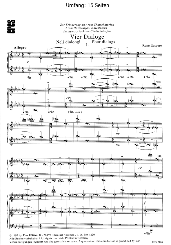 Vier Dialoge & Ritornell (h-moll) (Klavier)Eres Estonia Edition