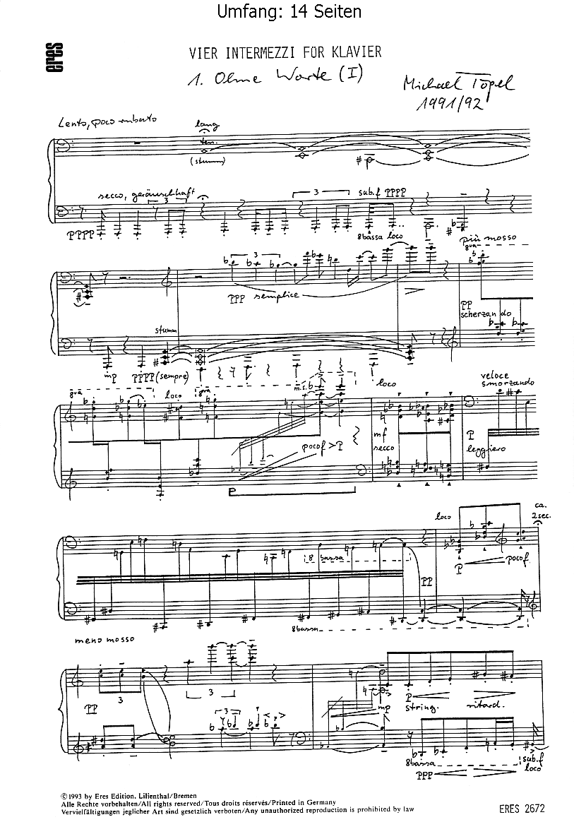 Die Stücke für Klavier können einzeln, aber auch 'en suite' gespielt werden. Auch auf CD erschienen (eres-CD 02)
