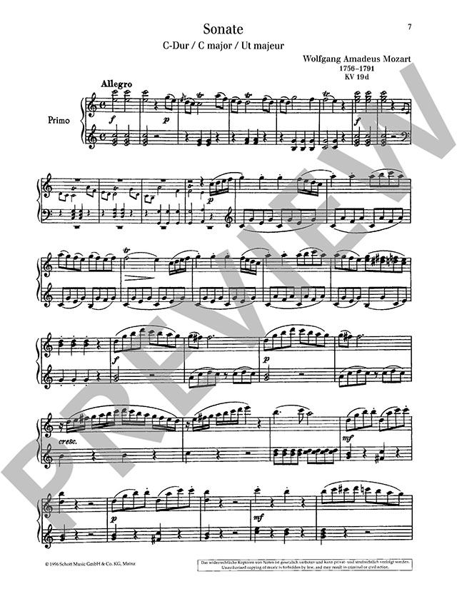 Wolfgang Amadeus Mozart Sonate C-Dur, KV 19d