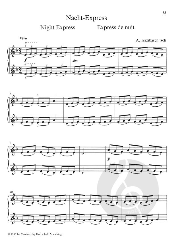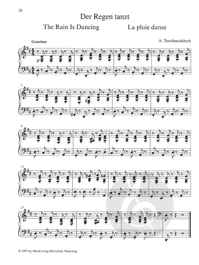 25 Klavierstücke zu vier Händen passend zu allen Klavierschulen. Da der Klavierpart des Schülers den Umfang von 5 Tönen nicht überschreitet, sind diese Kompositionen auch für den Anfangsunterricht gut geeignet.