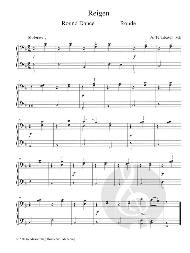 24 Klavierstücke zu vier Händen. Progressive Fortsetzung des ersten Bandes. Leicht bis mittelschwer.