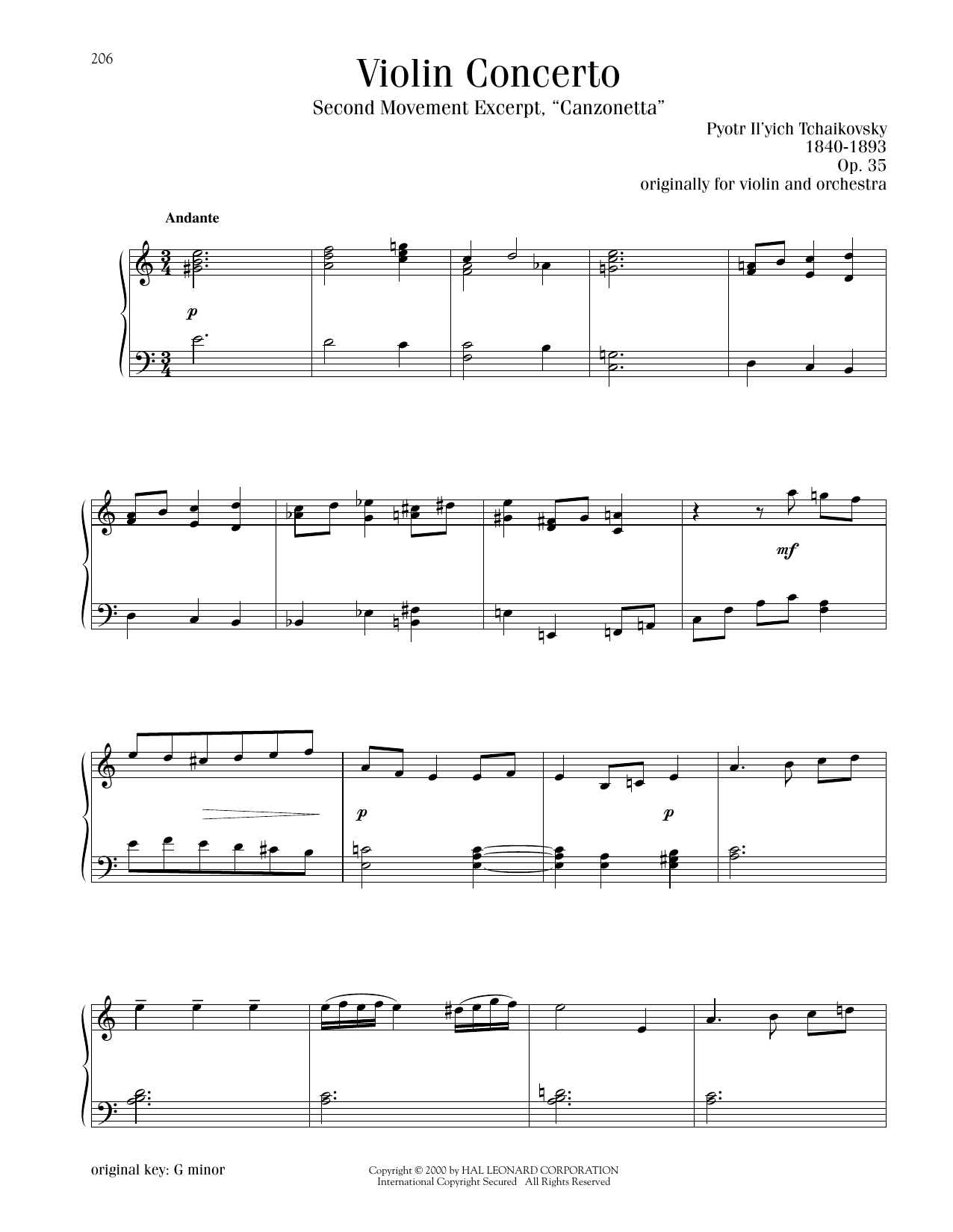 Violin Concerto in D Major, Op. 35, Second Movement