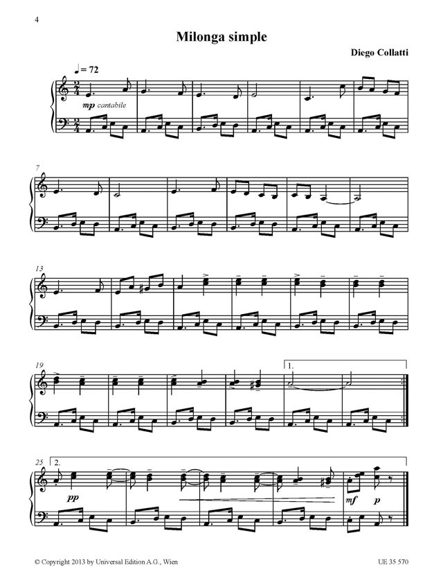 In recent years the tango has re-emerged and is enjoying popularity once again. The publication of this new educational tango album by Diego Collatti is particularly well timed and will surely be of great interest to teachers and anyone wanting to learn to play music of this fascinating genre. A brief history is included. The pieces progress in difficulty.