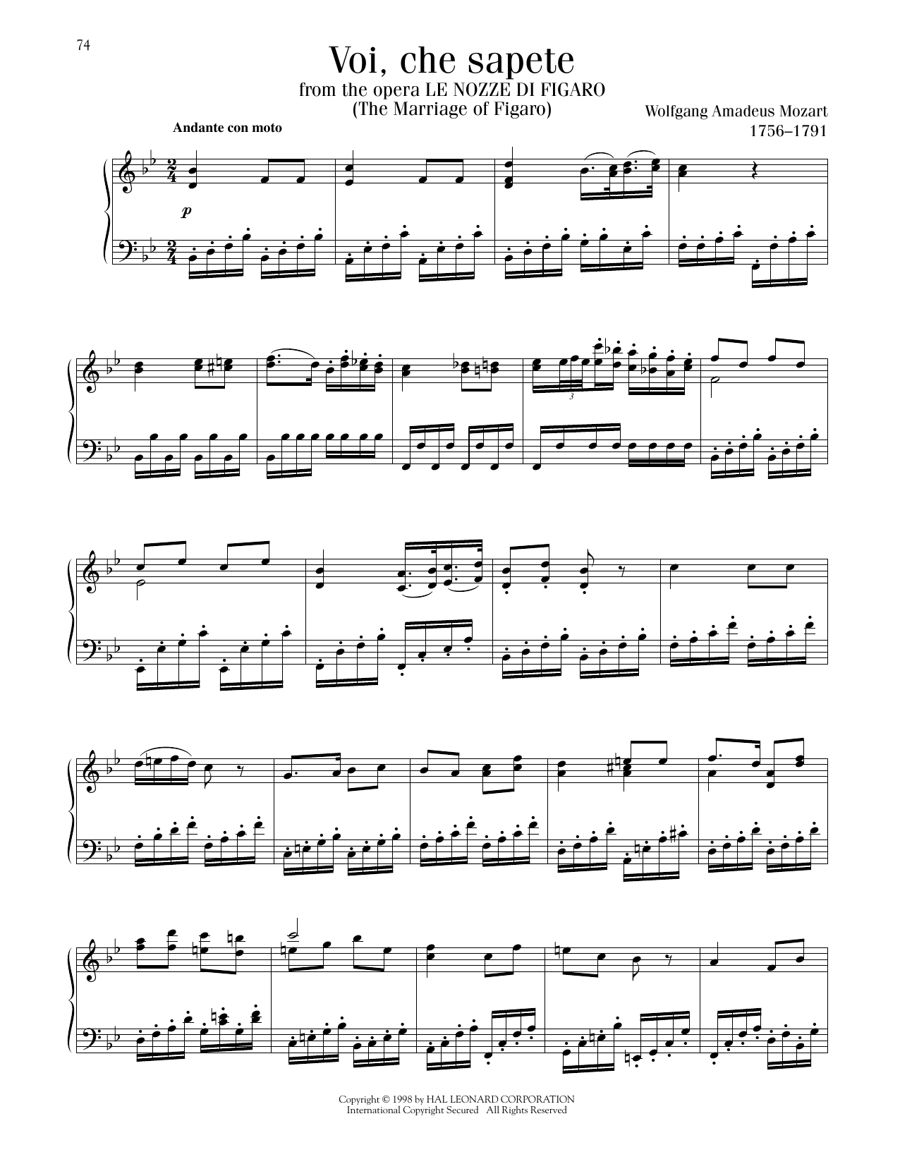 Voi, Che Sapete (The Marriage Of Figaro)