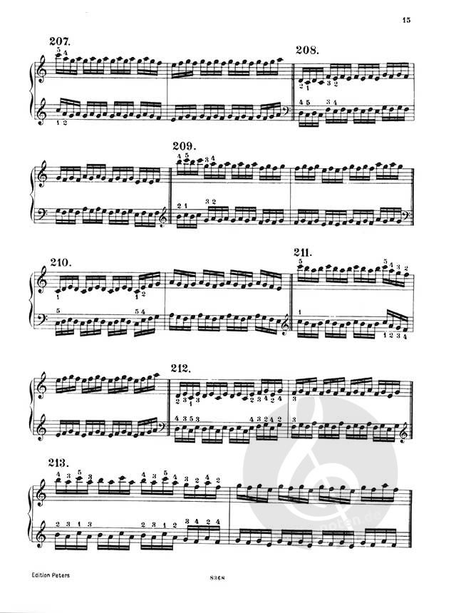 Die vorliegenden Etüden sind unterteilt in Übungen mit stillstehender und fortrückender Hand, letztere zusätzlich mit Gegenbewegung. Damit bietet die Ausgabe einen Überblick über verschiedene Übemöglichkeiten.