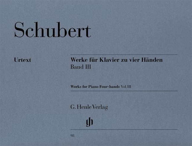 Kein anderer großer Komponist hat so viele Werke für Klavier zu vier Händen hinterlassen wie Franz Schubert - insgesamt 54 (davon 32 mit Opus-Zahl): Fantasien, Tänze, Märsche, Variationen, Rondos, Sonaten usw. Gemeinsames Musizieren, häufig in geselligem Kreis, war ein fester Bestandteil des Schubert'schen Freundeskreises. Wie viel Freude bereitet es, sich mit diesen Stücken zu befassen! In den drei Henle-Urtextbänden mit Schuberts vierhändiger Klaviermusik sind sie chronologisch angeordnet. Band III enthält neun Stücke aus Schuberts letzten drei Lebensjahren, also seine reifen Werke dieser Gattung, darunter die berühmte Fantasie in f-moll, D 940 (siehe auch die Einzelausgabe HN 180), und das nicht weniger bekannte, vom Verleger der postumen Erstausgabe mit dem Beinamen Lebensstürme versehene große Duo in a-moll, D 947 - beide aus dem Frühjahr 1828.