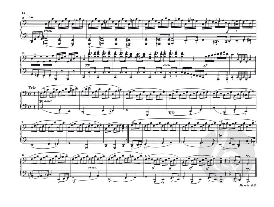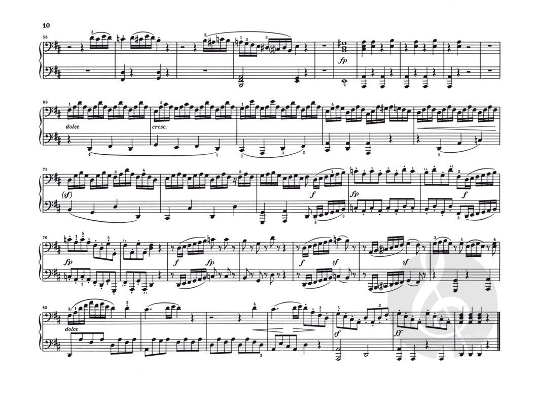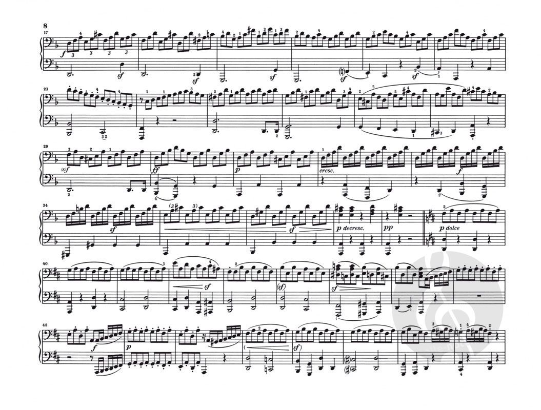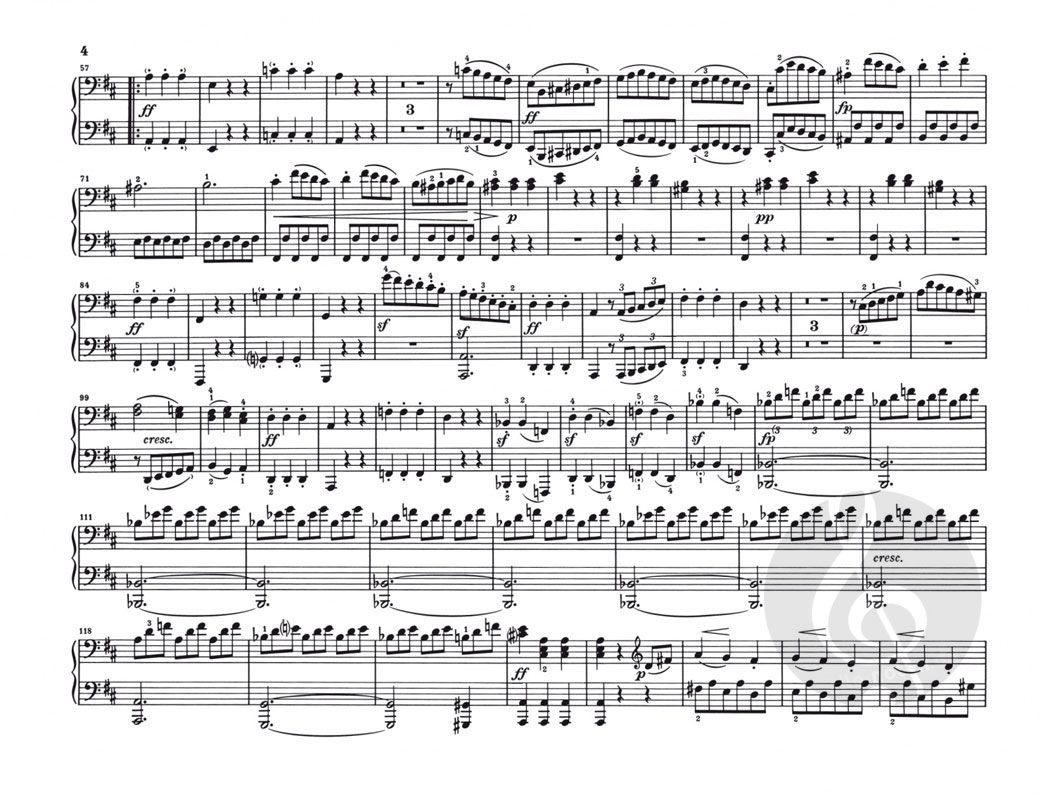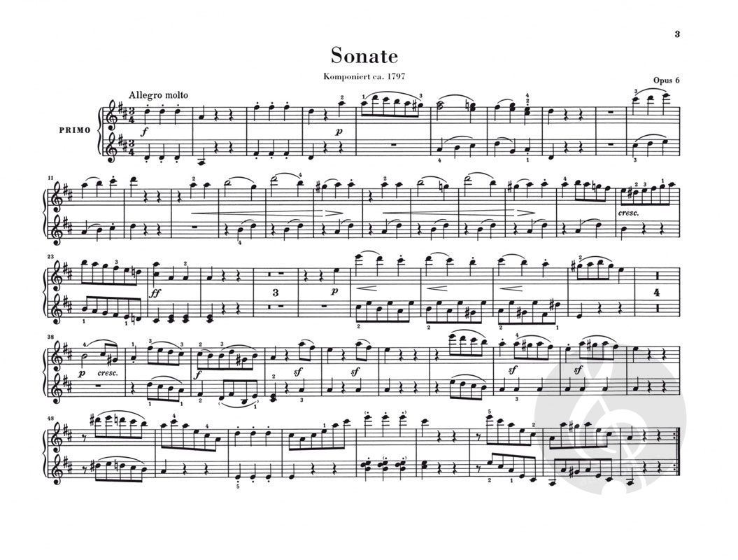 Der Band enthält mit Ausnahme der vierhändigen Fassung der 'Großen Fuge' (HN954) sämtliche Werke Beethovens für diese von ihm selten gepflegte Besetzung: die Sonate D-dur op. 6, die 'Drei Märsche' op. 45, die 'Acht Variationen über ein Thema des Grafen von Waldstein' WoO 67 und die 'Sechs Variationen über Ich denke dein' WoO 74 - alles Werke, die bestens für den Klavierunterricht geeignet sind. Auf der Grundlage der Beethoven-Gesamtausgabe wurde der Notentext gemäß des unlängst erschienenen Kritischen Berichts revidiert sowie mit neuen Worttexten ausgestattet. Ebenfalls neu ist der Fingersatz des Klavierduo-Spezialisten Andreas Groethuysen.