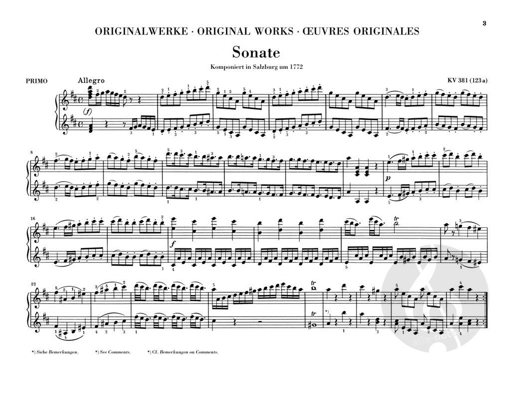 Mozart gehört zu den Pionieren der vierhändigen Klavierkomposition; die Anregung dazu erhielt er zweifellos durch das gemeinsame Musizieren mit seiner Schwester am Cembalo, wie es das berühmte Familienbild von della Croce (1780/81) verbürgt. Unsere Ausgabe umfasst neben allen authentischen Sonaten und Variationen auch fragmentarisch überlieferte und ergänzte Werke sowie eine Mozart zugeschriebene Sonate und drei vierstimmige Kompositionen, die ursprünglich entweder für mechanisches Orgelwerk geschrieben wurden oder ohne Instrumentenangabe überliefert sind. Die nun vorliegende grundlegende Revision (früher HN92 und 93) konnte auf eine erweiterte Quellenbasis und die neuesten Erkenntnisse der Mozart-Forschung zurückgreifen.