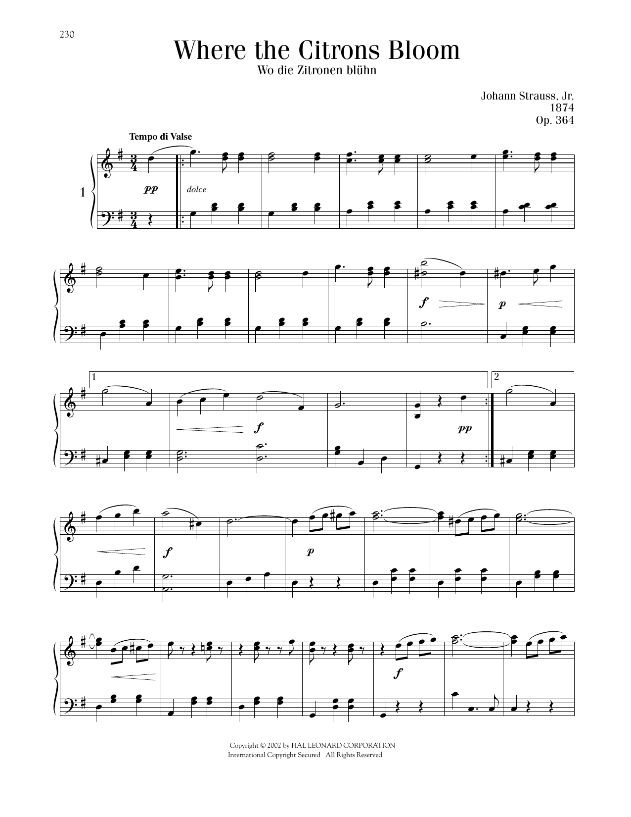 Where The Citrons Bloom, Op. 364