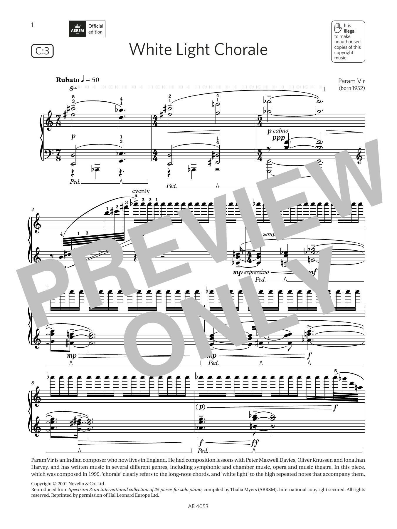 White Light Chorale (Grade 7, list C3, from the ABRSM Piano Syllabus 2023 & 2024)
